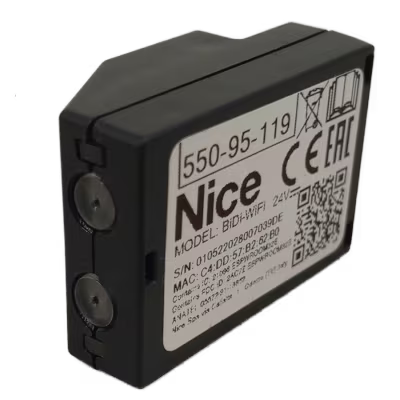 El módulo Nice BiDi-WiFi es una interfaz de programación de bolsillo que garantiza una configuración sencilla y completa de los automatismos Nice Gate&Door a través de la app MyNice Pro, haciendo que los procedimientos de configuración de la instalación sean sencillos y eficaces. Cuando se conecta la interfaz BiDi-WiFi, esta genera automáticamente una red WiFi para configurar el automatismo, mediante la app, también puede hacerlo cómodamente desde el asiento de tu vehículo.